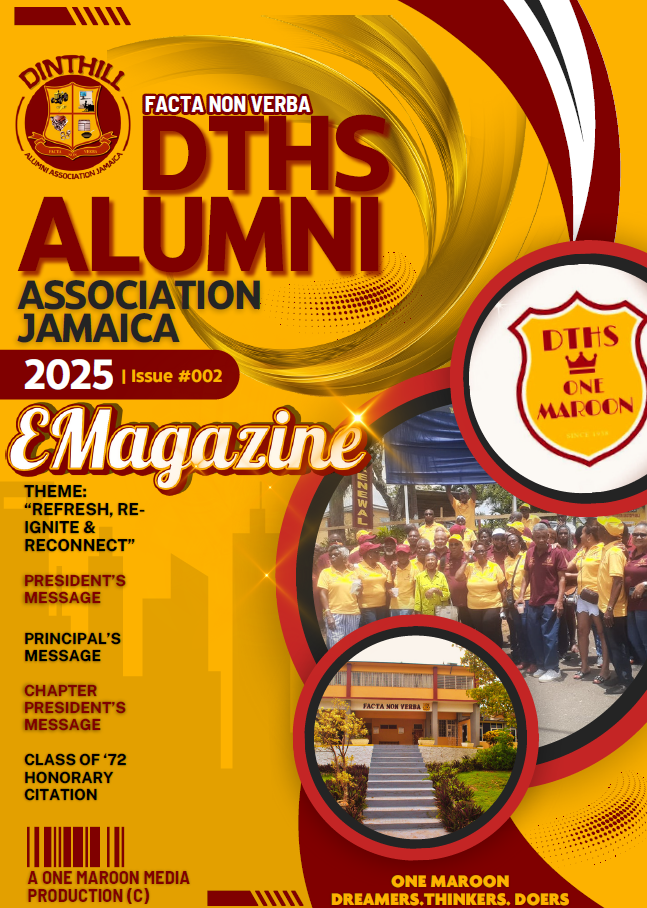 This is the DTHS Alumni Association Jamaica 2025 E-Magazine souvenir. This is the second edition of the series of magazines. It encapsulates the activities, events, and accomplishments of the Alumni Association of Jamaica. We thank all our sponsors, donors, and contributors for their support of this venture… Facta Non Verba #ONEMAROON – WE ARE DREAMERS.THINKERS.DOERS! AS WE REFRESH, RE-IGNITE, AND RECONNECT